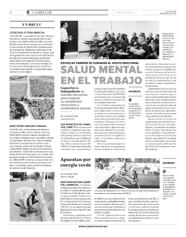 CAMPECHE. La Secretaría de Desarro- combatir el agotamiento emo- tamiento emocional y estrate- ción y el apoyo emocional. Con