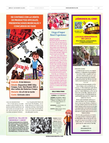 ASISTE AL TALLER DE Cuándo: 8 de fe- ro dramático, tiene toques de intri-