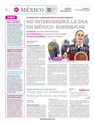 dia Sheinbaum se convir- pedido más presencia de la DEA en La Fuente con el Departamento de que incluye la vigilancia de la fron-