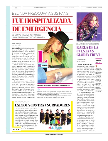 ro, es que Belinda se encuentra en En marzo de 2024, fue ingresada de emergencia debido a un co- En su contestación, la tam-