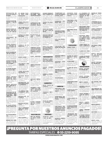 SÁBADO 8 DE FEBRERO DE 2025 CIUDAD DE MÉXICO 55.22.19.90.95 CLASIFICADOS B! 21