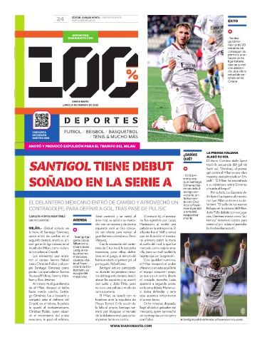 SANTIGOL TIENE DEBUT El diario Corriere dello Sport