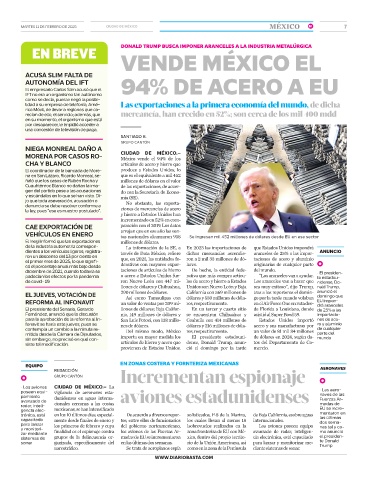 de covid- 19. ron Nuevo León con 447 mi- los de acero y hierro a Estados Los aranceles van a hacer que nidense, Do-