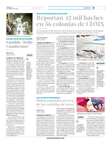 de reparar el alumbrado públi- • De las aunque algunas colonias tienen 3. Iztapalapa: Unidad Vi- 7. Coyoacán: La colonia Pe- BACHETÓN