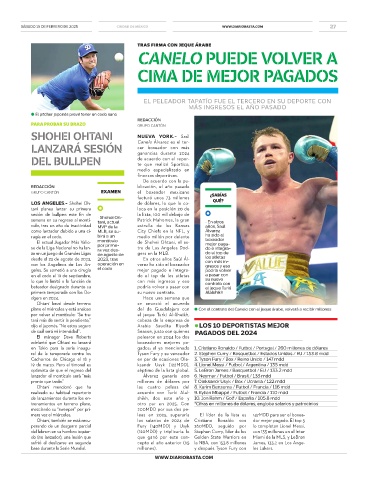 Ohtani, también se está recu- los salarios de 2024 de Cristiano Ronaldo con dor mejor pagado. El top 5