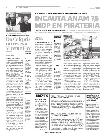 el expresidente panista Vicen- indepen- a EU, lo que da pie que la delin- na, entre las En este contexto, el decomiso El SAT, a cargo de Antonio