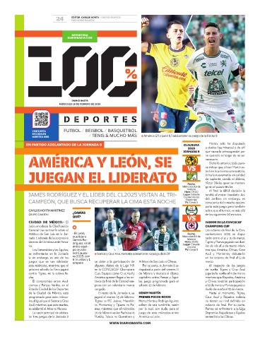 NUESTRA WEB ● América (2°) y León (1°) adelantaron su juego de la Fecha 9