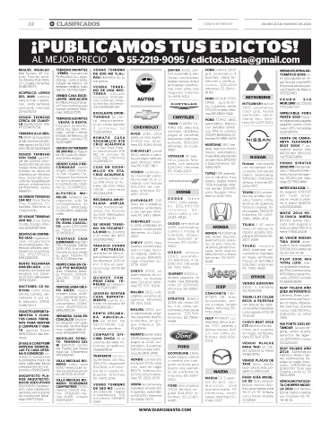 22 B! CLASIFICADOS CIUDAD DE MÉXICO JUEVES 20 DE FEBRERO DE 2025