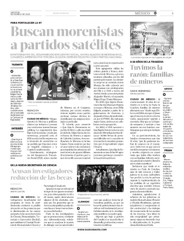 doy, vice- de Morena en el Congreso, cercanas a Morena, como Félix Conchos, familias de mineros biernos
