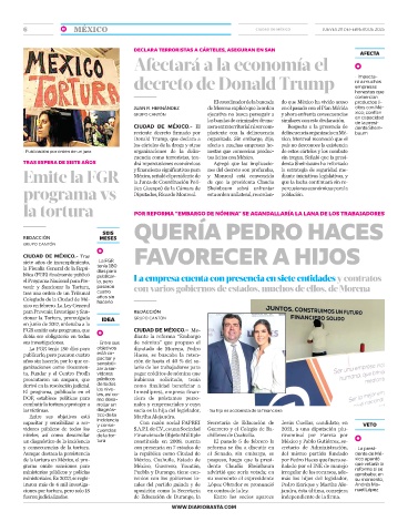 de la tortura en México, el pro- México, Coahuila, Estado de pospuso, luego que la presi- por Pedro Haces que fuera se- xico apuntó