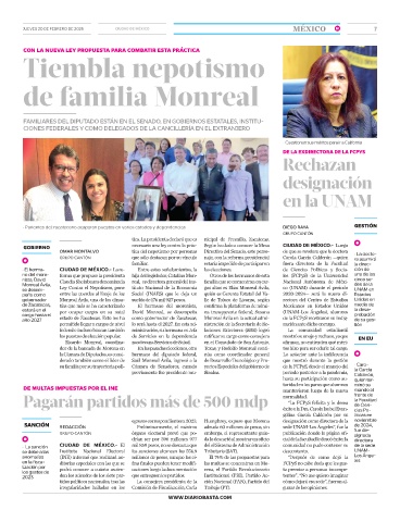 SANCIÓN REDACCIÓN Preliminarmente, el máximo adeuda 60 millones de pesos, sin sede UNAM-Los Ángeles”, fue la de 2024,