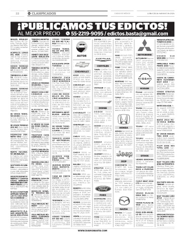 22 B! CLASIFICADOS CIUDAD DE MÉXICO LUNES 24 DE FEBRERO DE 2025