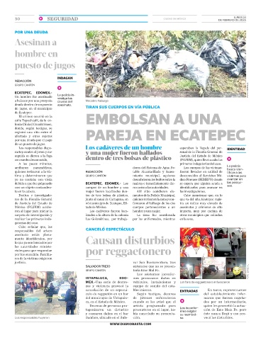 res de la Fiscalía General junto al canal de Cartagena, en quienes revisaron la zona y con- que va del año, Ecatepec regis-