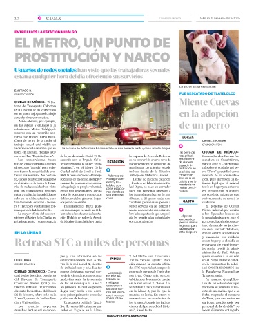 vicio en el Metro de la Ciudad es ción Hidalgo en sobre la Aveni- cía les remita a las autoridades • Algunos la pasada legislatura, que el