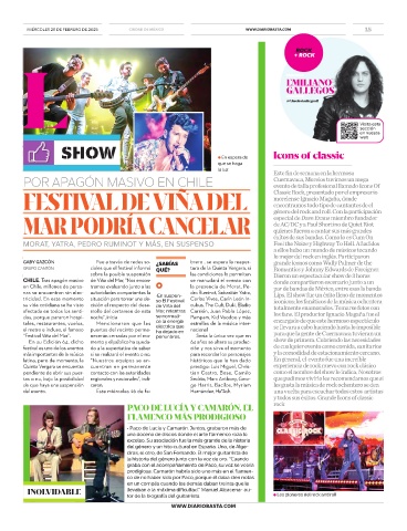 CHILE. Tras apagón masivo de Viña del Mar, “Nos encon- se reanudará el evento con donde compartieron escenario junto a un