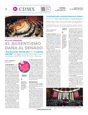 CIUDAD DE MÉXICO.- A me- cial en múltiples ocasiones, grupales, con sus 71 diputados au- mostró múltiples inasistencias,