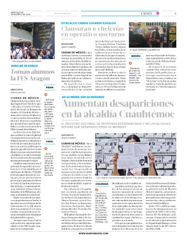 el estacionamiento de la misma. dromo, Morelos, Tlatelolco No- res, Centro, En segundo lugar estuvieron traron dos desapariciones, no