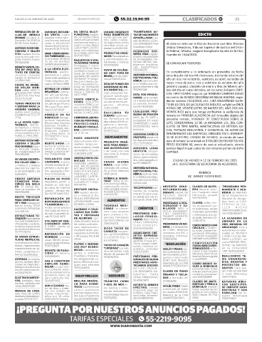 JUEVES 27 DE FEBRERO DE 2025 CIUDAD DE MÉXICO 55.22.19.90.95 CLASIFICADOS B! 21