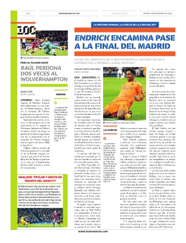 27 de la Premier League, en- La pólvora del Real So- Sociedad en llante a Endrick. Vázquez, recambio del amo-