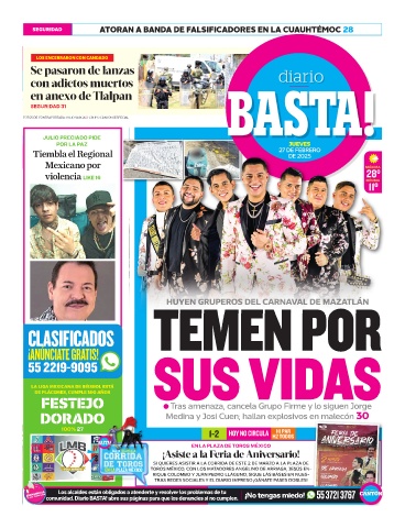 FESTEJO ● Tras amenaza, cancela Grupo Firme y lo siguen Jorge