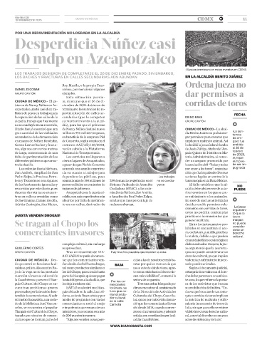 la Cuauhtémoc, pues en el Tian- hasta 400 pesos a la alcaldía, que • Por los co- señora de un puesto. te sano, lo que refuerza la postu-