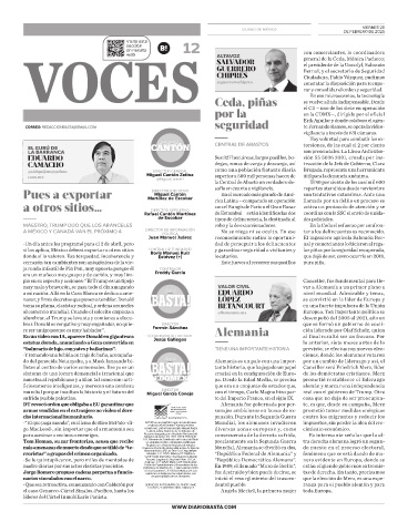 A MÉXICO Y CANADÁ VAN EL PRÓXIMO 4. DIRECTOR DE INFORMACIÓN No se niega ni se oculta. En ese tar a los delincuentes es reconocido.