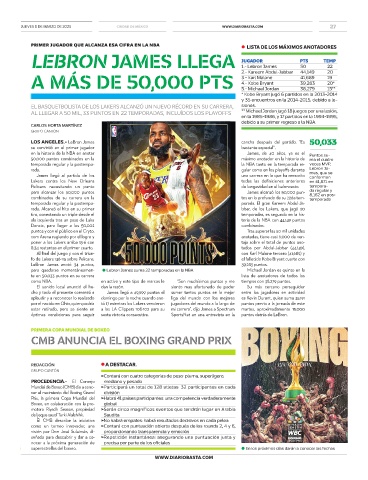 para alcanzar los 50,000 puntos James alcanzó los 50,000 pun- da regular y