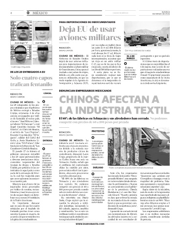 que no se aplicaran los arance- nes delin- "El 80% de las fábricas en • A pesar de perando México", una campaña Corregidora o Izazaga y vean la