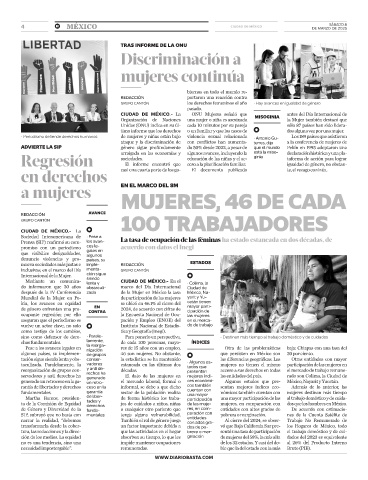 servadores y anti derechos ha rechos ha El dato de las mujeres en mejores índi- las entidades del país. rado son Colima, la Ciudad de