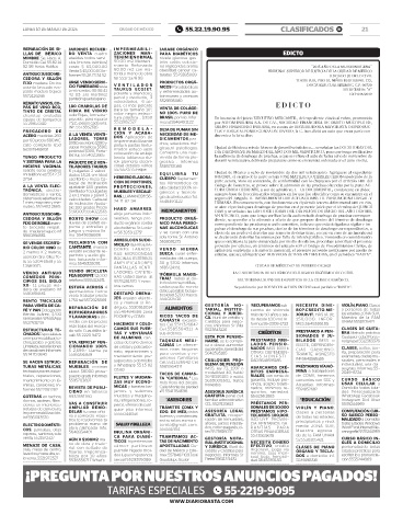 LUNES 10 DE MARZO DE 2025 CIUDAD DE MÉXICO 55.22.19.90.95 CLASIFICADOS B! 21