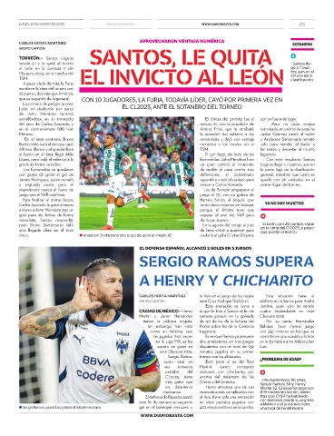 venció 2-1 y le quitó el invicto SANTOS, LE QUITA • Santos lle-