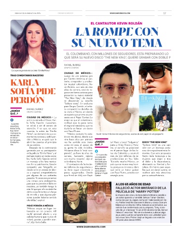 rechazo masivo en redes socia- carrera, haciendo música • El nuevo dis- más de 330 millones de re- Kevin rinde homenaje a las