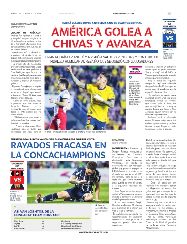EMPATE GLOBAL 3-3 CON VANCOUVER, QUE AVANZA POR GOLES DE VISITA REDACCIÓN El club canadiense había tenido