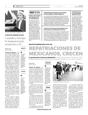 TAS EN MÉXICO contra, el dictamen que expide leyes sobre transpa- advirtió sobre ries-