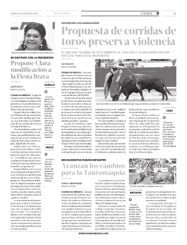 ción de las corridas de toros en ros por el La jefa de Gobierno, Clara bien nosotros buscamos la pro- Toros de Lidia (ANCTL), que • El sector