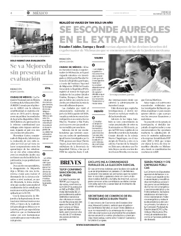 sin presentar la no Aureoles Conejo, el exgober- • Los viajes y