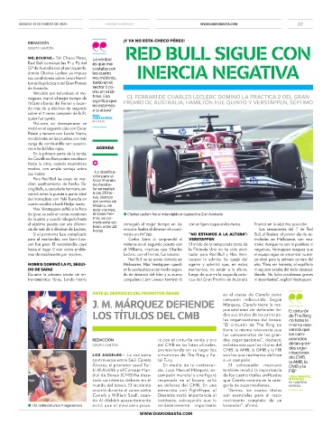 de girar, se salió en varias ocasiones el Gran Pre- ● Charles Leclerc fue el más rápido en la practica 2 en Australia