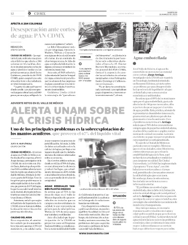 tructuras como la Catedral Me- áreas de riego en el Valle de de California demuestra el pa- SITUACIÓN advierte Arriaga. La solución no pasa solo
