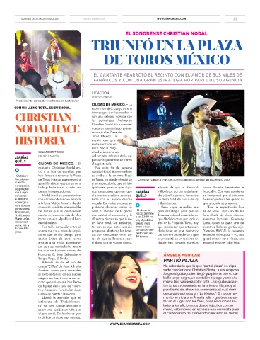 Nodal será de Toros México, pues reunió a de Toros, en donde ofreció un • Christian cantó a más de 40 mil fanáticos, desde un escenario 360.