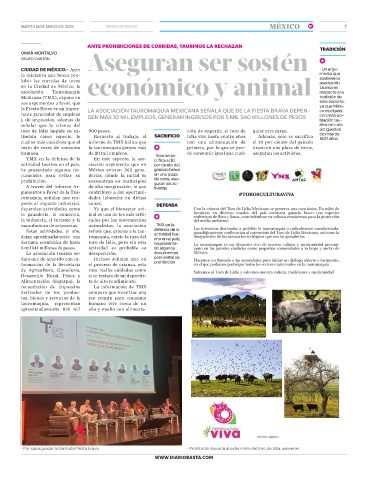 la Fiesta Brava es un impor- LA ASOCIACIÓN TAUROMAQUIA MEXICANA SEÑALA QUE DE LA FIESTA BRAVA DEPEN- ya que Méxi-