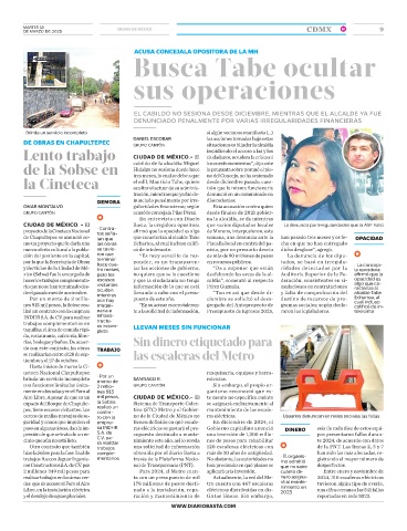 de Chapultepec se anunció co- lan que que caracteriza al alcalde Tabe semana, una denuncia ante la han pasado tres meses y es fe- OPACIDAD