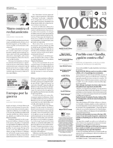 tores como la falta de oportunidades cuencia a los jóvenes”. Miguel Cantón Pueblo con Claudia,