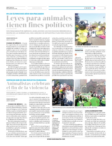 sin Animales donde el Partido Verde en el uso de delfines para espectá- tal; en la misma entidad en 2022 fue blea Legisla- sarial, se hicieron modificaciones