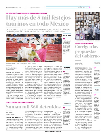 munidades originarias dónde re- dades como la Ciudad de México, lebran de 600 a 700 corridas de Guadalajara cedimientos y legislaciones insti-
