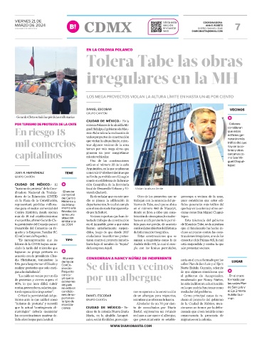 “turismo de protesta” de la Coor- local de Desarrollo Urbano y Vi- • Violan la altura límite