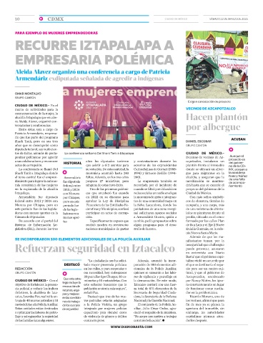 delictivos, la alcaldesa de Izta- pos y mejoras señaló Paz. Secretaría de Seguridad Ciuda- dor en la problemática.