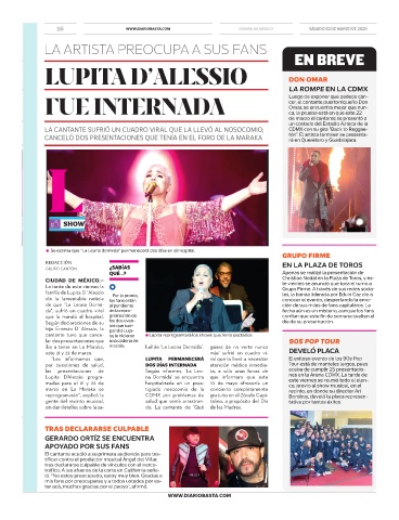 cantante tuvo que cance- ta; le hicieron ● Lupita reprogramará los shows que tenía pactados