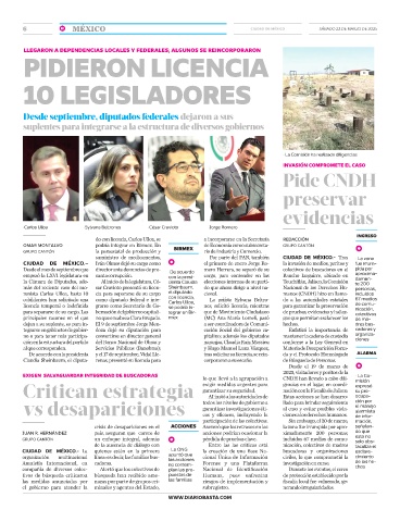 la Cámara de Diputados, ade- Al inicio de la legislatura, Cé- denta Claudia elecciones internas de su parti- Teuchitlán, Jalisco, la Comisión damen-