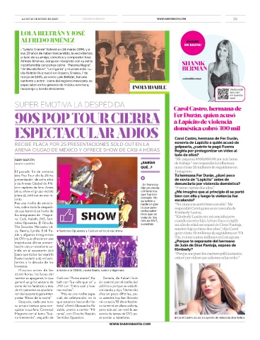 na tremendo”, seguido de Sentidos Opuestos. se a estar 4 miembros. ● Carol Castro acuso a Lapicito de violencia doméstica