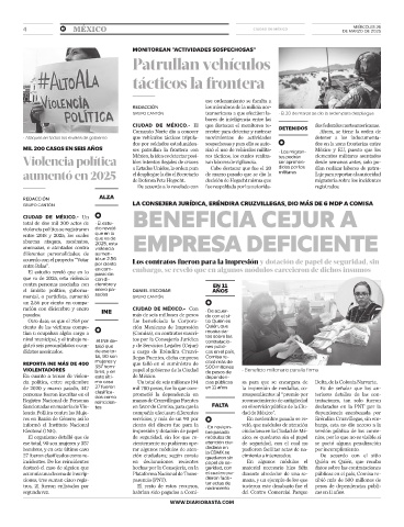 Violencia política México, la idea es detectar posi- res tácticos, los cuales realiza- tes podrán elementos militares asentados